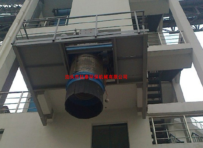 伸縮溜管采用雙層套管結(jié)構(gòu),由溜筒和防塵罩構(gòu)成。溜筒內(nèi)通過(guò)物料,防塵罩外套在溜筒上,期間行程吸塵腔。無(wú)塵伸縮溜管底部將設(shè)料位傳感器和防塵群罩。料位傳感器將設(shè)在外側(cè)或內(nèi)側(cè),防塵群罩將采用分塊重疊式。在裝車過(guò)程中料位傳感器接觸物料后,無(wú)塵伸縮溜管將及時(shí)提升使料頂與堆積的物料始終保持一定距離。防塵罩能罩在料堆上,以保證吸塵效果,防止粉塵外溢。溜筒將采用附有聚氨酯耐磨襯板的鋼板制成,防塵罩采用防靜電柔軟強(qiáng)度大的化纖材料制成。防塵罩內(nèi)將設(shè)置支承骨架,既可上下伸縮,又可保證氣流通暢。伸縮溜管升降自如,無(wú)阻滯現(xiàn)象;在伸縮溜管底部將至少設(shè)3個(gè)吊點(diǎn),以保證升降機(jī)構(gòu)帶動(dòng)伸縮溜管平穩(wěn)升降。伸縮溜管外形尺寸圖/外伸縮防塵罩圖片